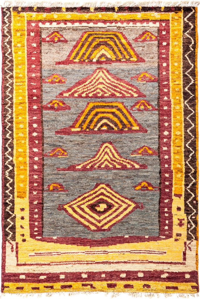These area rugs resemble traditional Persian style tribal village designs. These rugs are bold, striking and colorful. South Persian tribal pieces, true Ziegler Sultanabads, and almost any non-urban Iranian weaving has been interpreted and creatively adapted. These carpets are directly appealing and therefore work well in any context, overall style or period.