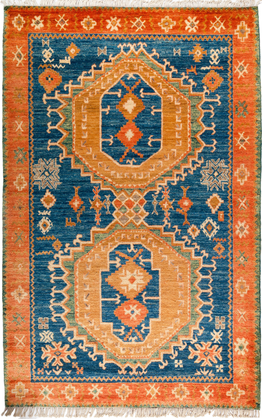 These area rugs resemble traditional Persian style tribal village designs. These rugs are bold, striking and colorful. South Persian tribal pieces, true Ziegler Sultanabads, and almost any non-urban Iranian weaving has been interpreted and creatively adapted. These carpets are directly appealing and therefore work well in any context, overall style or period.