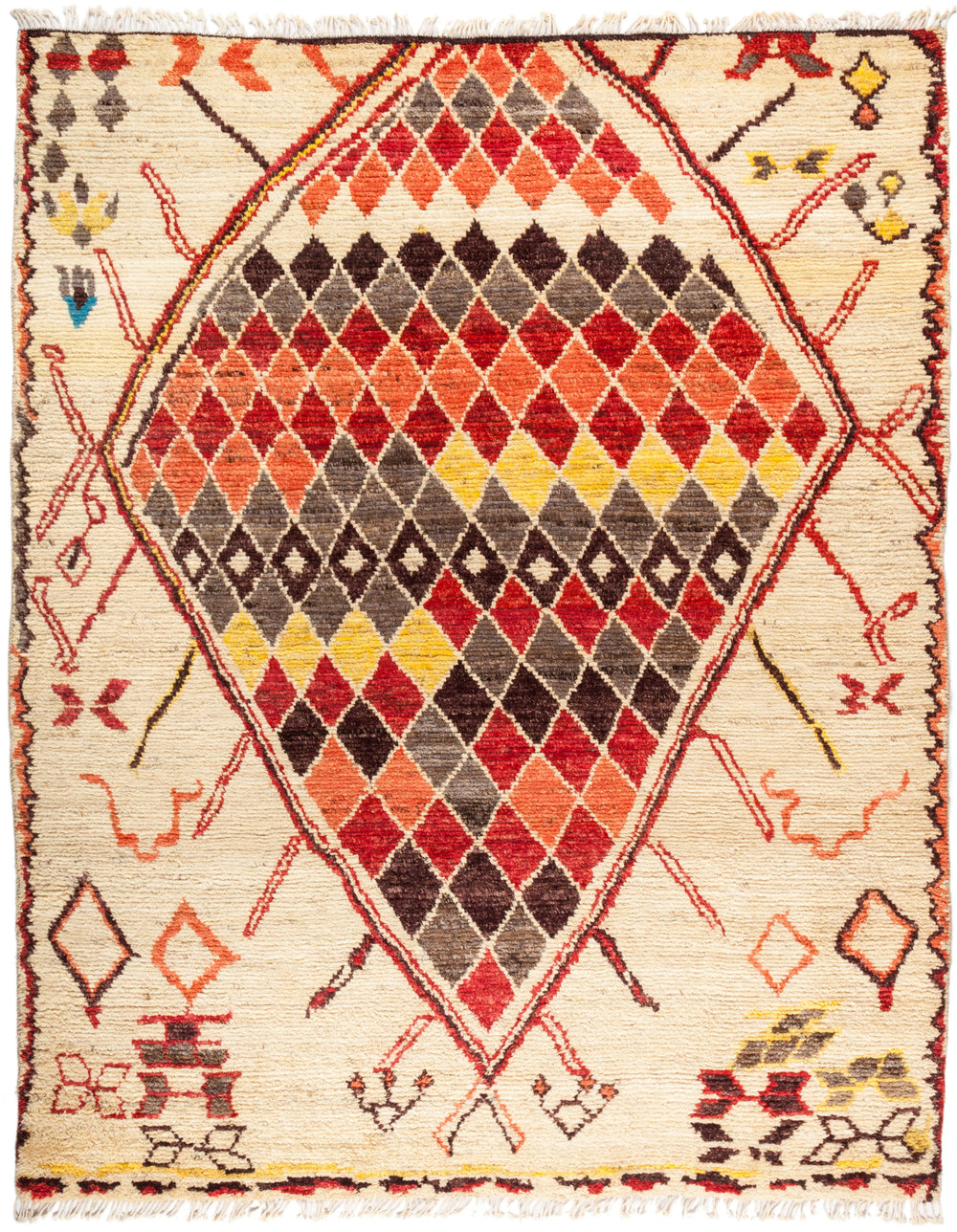 These area rugs resemble traditional Persian style tribal village designs. These rugs are bold, striking and colorful. South Persian tribal pieces, true Ziegler Sultanabads, and almost any non-urban Iranian weaving has been interpreted and creatively adapted. These carpets are directly appealing and therefore work well in any context, overall style or period.