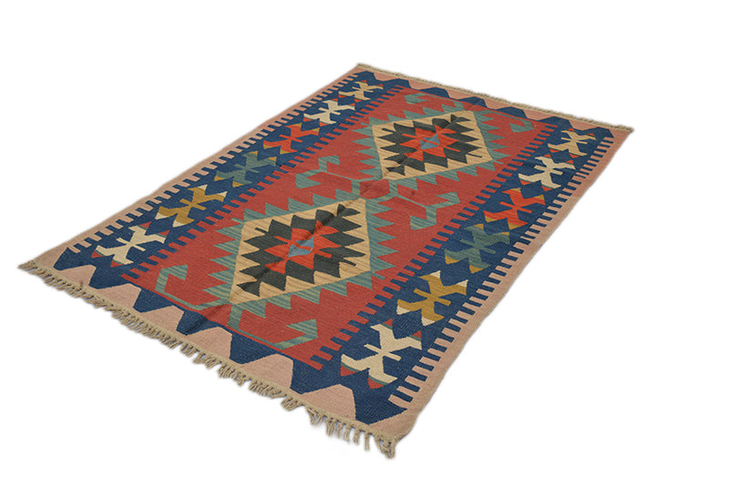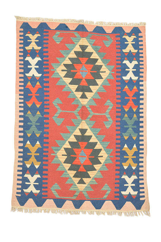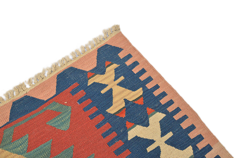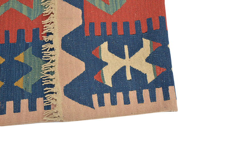 This priceless Turkish Kilim rug has with it a typical hand-woven technique that is the case with most kilim rugs! Oriental in color and pattern, this stunning piece of accent has a warp-faced look with promising look and quality. Ideal for even high-traffic areas, this kilim rug is weaved using skilled craftsmen of the age with pure wool and cotton. Boasting a traditional pattern with a mix of red, blue and beige colors that has been tried for over many years now, this antique piece has clear-cut motifs with neat border and fringes for that trendy, universal appeal. Furnishing this in your home will impart a transcending appeal, blending harmony and beauty.