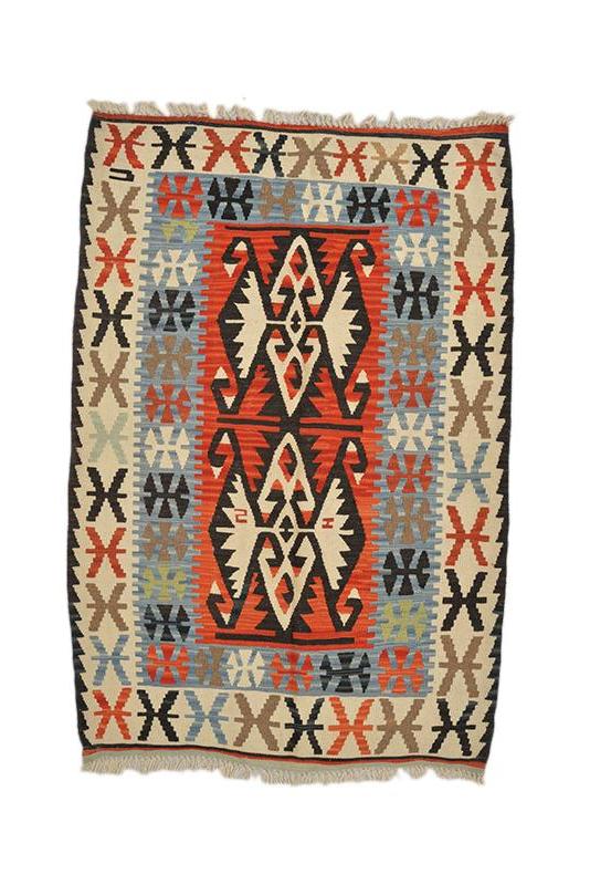 Bold and beautiful, this traditional Turkish Kilim rug has an oversized rope pattern with stark highlights against a light background. Those solid busy patterns created with Turkish Cotton Wool spells calm a soothing environment everywhere. Be it modern, traditional, or a universally styled home, this Turkish Kilim in four saturated colors of bright orange, beige and green will bring cleverness to your hallway, entryway or bedroom. The best part is its huge medallion motifs that are sure to liven up your monochromatic room. Ideal for even high-traffic areas, this Kilim rug is weaved using skilled craftsmen of the age with neat border and fringes for that trendy, universal appeal. Furnishing this in your home will impart a transcending appeal, blending harmony and beauty.