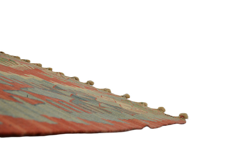 Extremely convenient to use on any surface, this beautiful, eye-catching woolen rug from the Turkish Kilim collection is a piece of true artistic beauty. The outstanding design created by the use of cascading series of tribal symbols on grey background makes your space attractive and soothing. The center of the carpet features a harvest-inspired design of watering crops in bright colored hues. Knotted edges impart a more eye-catchy charm to the already elegant decor piece. The vibrant colors like red, green and blue create a sense of enthusiasm throughout the entirety of this vintage rug. The carpet has a length 5' 10" and width 3' 8" and is ideal for decorating any living room.