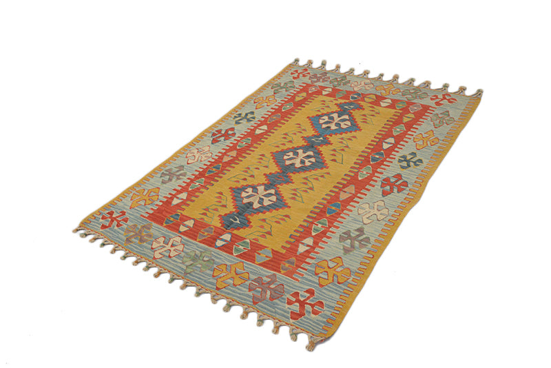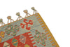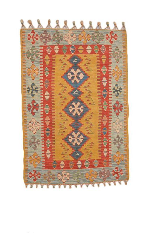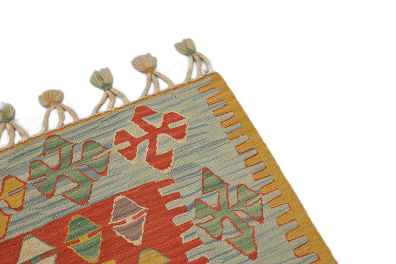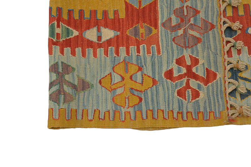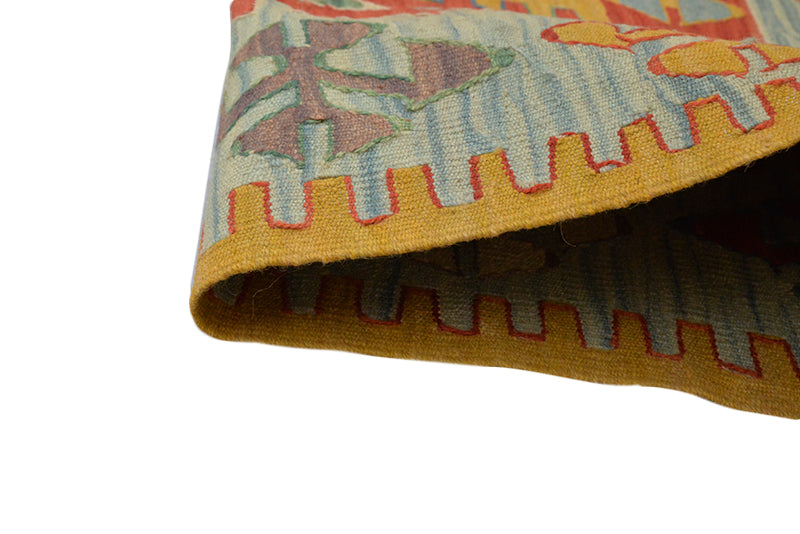 A real beauty, the bright red, blue and golds make this rug looks so extraordinary. Traditionally hand-made and authentically artful, this Traditional Kilim sports an elegant and a classic fashion that is not found in many. While there are many reasons to be liked by so many, the prominent one is due to its clarity in pattern and clear-cut thoughts! Possessing this rug is sure to bring loads of envy amongst your friends, relatives and guests. Its weaving is soft and floppy, which gives you an option of either using it on your floor or as a wall hanging. A closer look at it will reveal its hidden bohemian appeal which will look fantastic when paired with on wood or tiled flooring