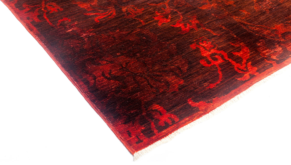 These area rugs are over dyed, which may have been originally in Moroccan, Ikat or Oushak patterns. The color schemes range from bright blue to orange to ruby red, rose, bronze, gold as well as pale shades of pastel. Solo Rugs Vibrance Collection rugs make a bold chromatic statement in virtually any context and are perfect for any interior design project.