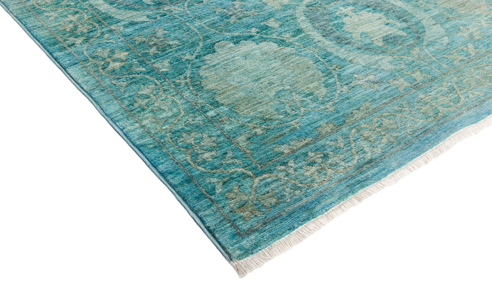 These area rugs are over dyed, which may have been originally in Moroccan, Ikat or Oushak patterns. The color schemes range from bright blue to orange to ruby red, rose, bronze, gold as well as pale shades of pastel. Solo Rugs Vibrance Collection rugs make a bold chromatic statement in virtually any context and are perfect for any interior design project.