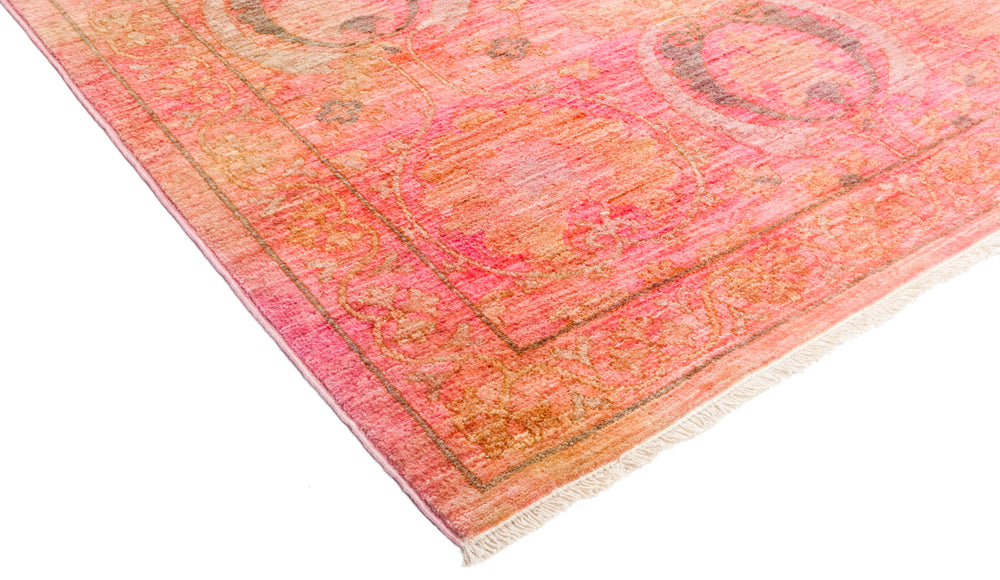 These area rugs are over dyed, which may have been originally in Moroccan, Ikat or Oushak patterns. The color schemes range from bright blue to orange to ruby red, rose, bronze, gold as well as pale shades of pastel. Solo Rugs Vibrance Collection rugs make a bold chromatic statement in virtually any context and are perfect for any interior design project.