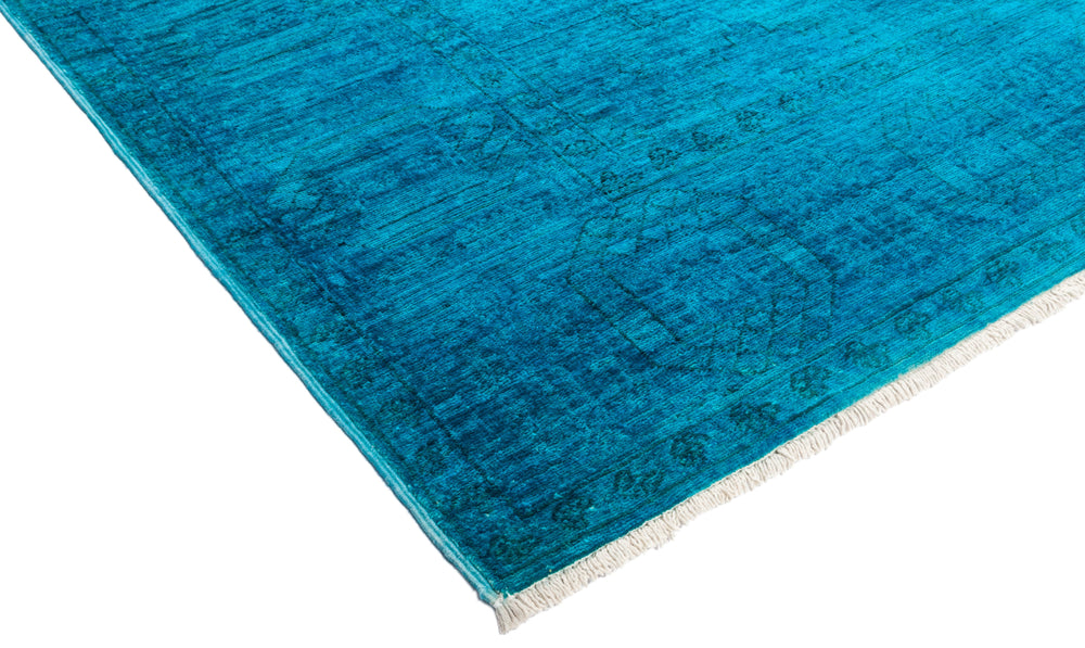 These area rugs are over dyed, which may have been originally in Moroccan, Ikat or Oushak patterns. The color schemes range from bright blue to orange to ruby red, rose, bronze, gold as well as pale shades of pastel. Solo Rugs Vibrance Collection rugs make a bold chromatic statement in virtually any context and are perfect for any interior design project.