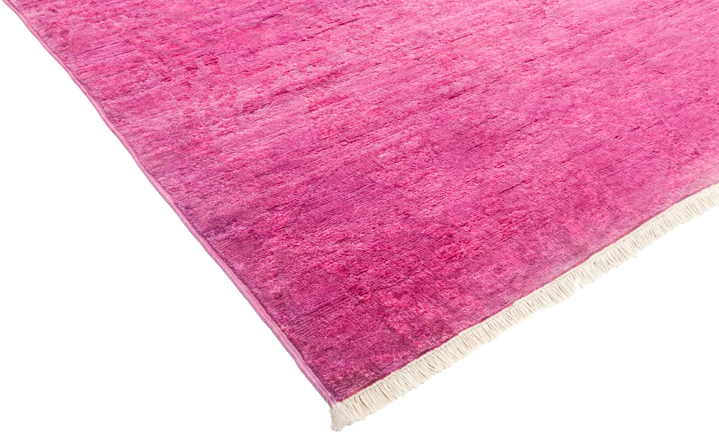 These area rugs are over dyed, which may have been originally in Moroccan, Ikat or Oushak patterns. The color schemes range from bright blue to orange to ruby red, rose, bronze, gold as well as pale shades of pastel. Solo Rugs Vibrance Collection rugs make a bold chromatic statement in virtually any context and are perfect for any interior design project.