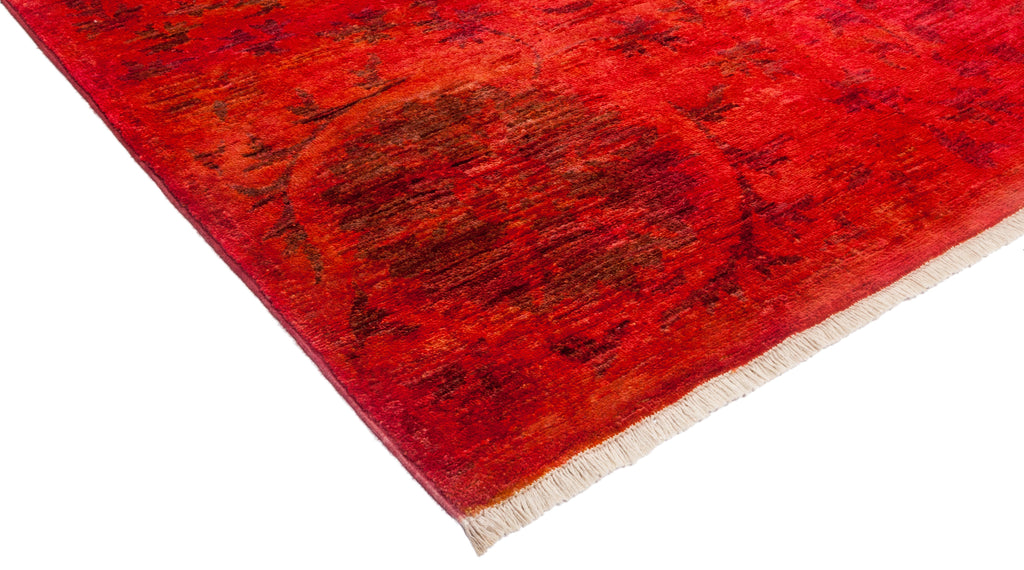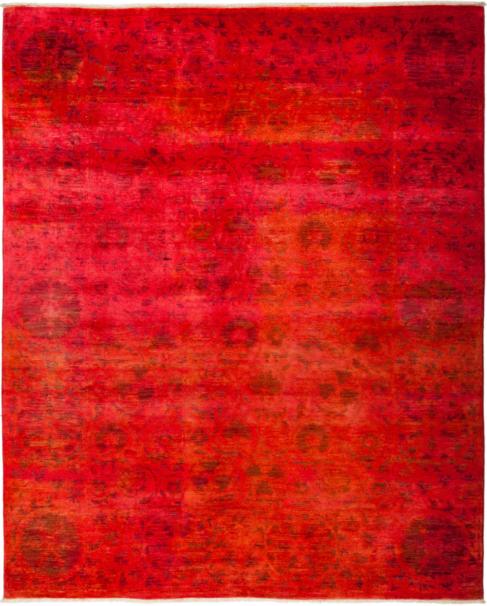 These area rugs are over dyed, which may have been originally in Moroccan, Ikat or Oushak patterns. The color schemes range from bright blue to orange to ruby red, rose, bronze, gold as well as pale shades of pastel. Solo Rugs Vibrance Collection rugs make a bold chromatic statement in virtually any context and are perfect for any interior design project.