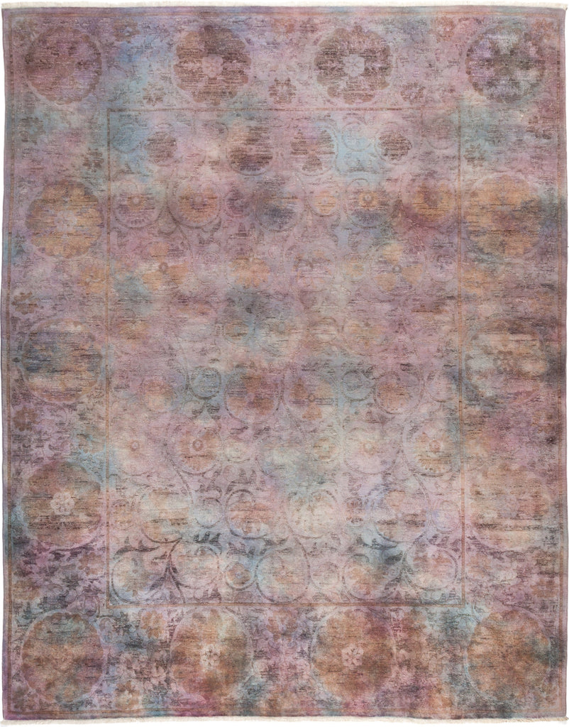 These area rugs are over dyed, which may have been originally in Moroccan, Ikat or Oushak patterns. The color schemes range from bright blue to orange to ruby red, rose, bronze, gold as well as pale shades of pastel. Solo Rugs Vibrance Collection rugs make a bold chromatic statement in virtually any context and are perfect for any interior design project.