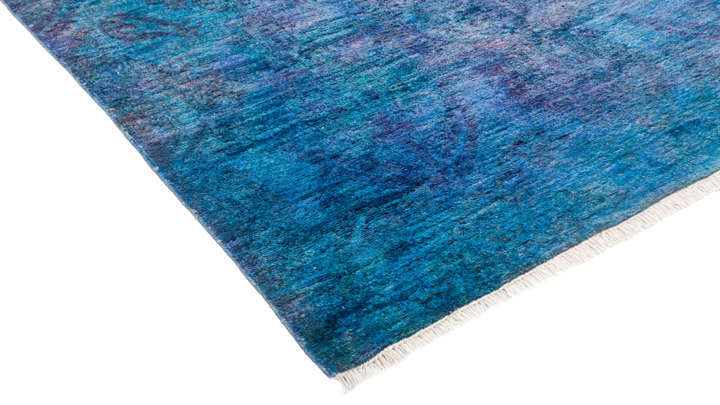 These area rugs are over dyed, which may have been originally in Moroccan, Ikat or Oushak patterns. The color schemes range from bright blue to orange to ruby red, rose, bronze, gold as well as pale shades of pastel. Solo Rugs Vibrance Collection rugs make a bold chromatic statement in virtually any context and are perfect for any interior design project.