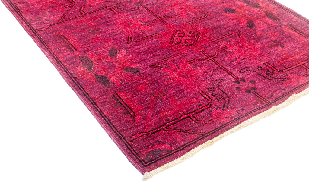 These area rugs are over dyed, which may have been originally in Moroccan, Ikat or Oushak patterns. The color schemes range from bright blue to orange to ruby red, rose, bronze, gold as well as pale shades of pastel. Solo Rugs Vibrance Collection rugs make a bold chromatic statement in virtually any context and are perfect for any interior design project.