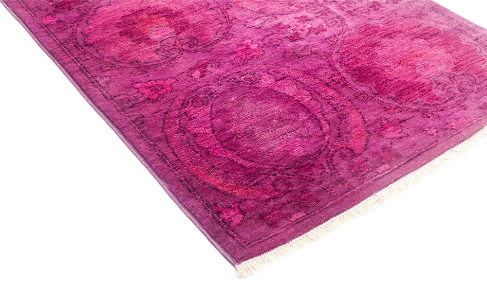 These area rugs are over dyed, which may have been originally in Moroccan, Ikat or Oushak patterns. The color schemes range from bright blue to orange to ruby red, rose, bronze, gold as well as pale shades of pastel. Solo Rugs Vibrance Collection rugs make a bold chromatic statement in virtually any context and are perfect for any interior design project.