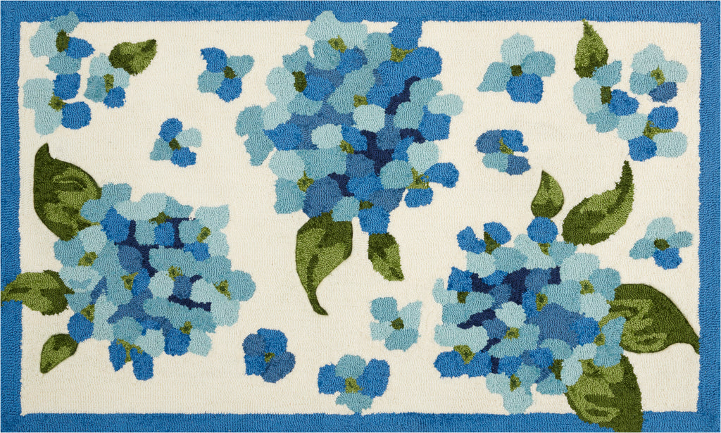 - Gorgeous blue Hydrangeas on a white background with a thin blue border