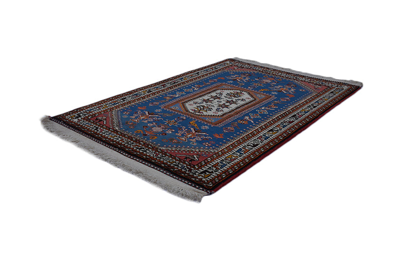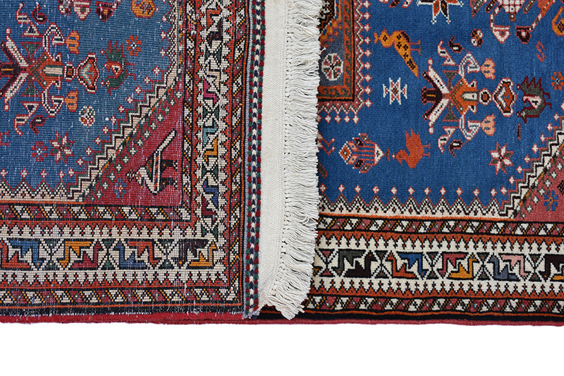 A rare source of wool which has been hand-picked and transformed to form a top-quality tribal rug with an impressive geometric design is what describes this Yalamah rug! Completely in contrast with other rugs of the category, this one tops the list with its fine 100% wool based make with distinctive repeated square shaped medallion right in the middle of the rug. The blue and beige color makes it the most common one of Yalameh, while its minimalist latch-hooked motifs add an aura of well-appointed style and warmth to wherever it gets thrown at. Finally, if your home has a tribal-based decor, then this rug is something you should hang on to.