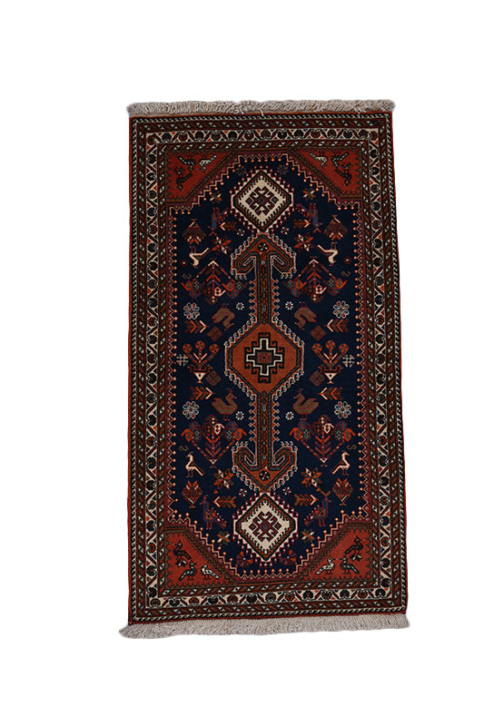 A rare source of wool which has been hand-picked and transformed to form a top-quality tribal rug with an impressive geometric design is what describes this Yalamah rug! Completely in contrast with other rugs of the category, this one tops the list with its fine 100% wool based make with distinctive repeated diamond medallions in a straight line. The dark blue and brown color makes it the most common one of Yalameh, while its minimalist latch-hooked motifs add an aura of well-appointed style and warmth to wherever it gets thrown at. Finally, if your home has a tribal-based decor, then this rug is something you should hang on to.