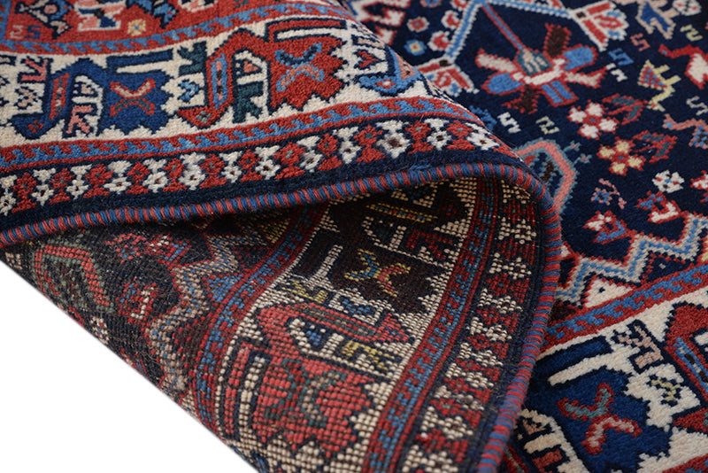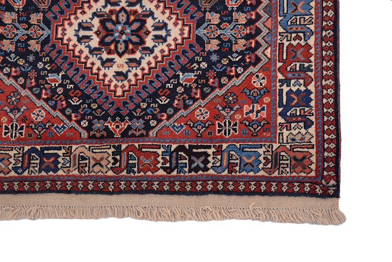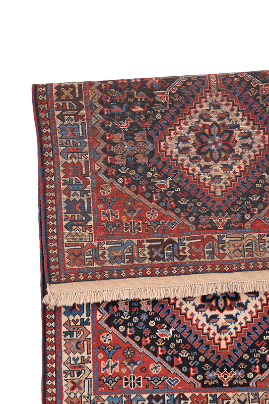 A rare source of wool which has been hand-picked and transformed to form a top-quality tribal rug with an impressive geometric design is what describes this Yalamah rug! Completely in contrast with other rugs of the category, this one tops the list with its fine 100% wool based make with distinctive repeated diamond medallions in a straight line. The yellow, bright red and moss color makes it the most common one of Yalameh, while its minimalist latch-hooked motifs add an aura of well-appointed style and warmth to wherever it gets thrown at. Finally, if your home has a tribal-based decor, then this rug is something you should hang on to.