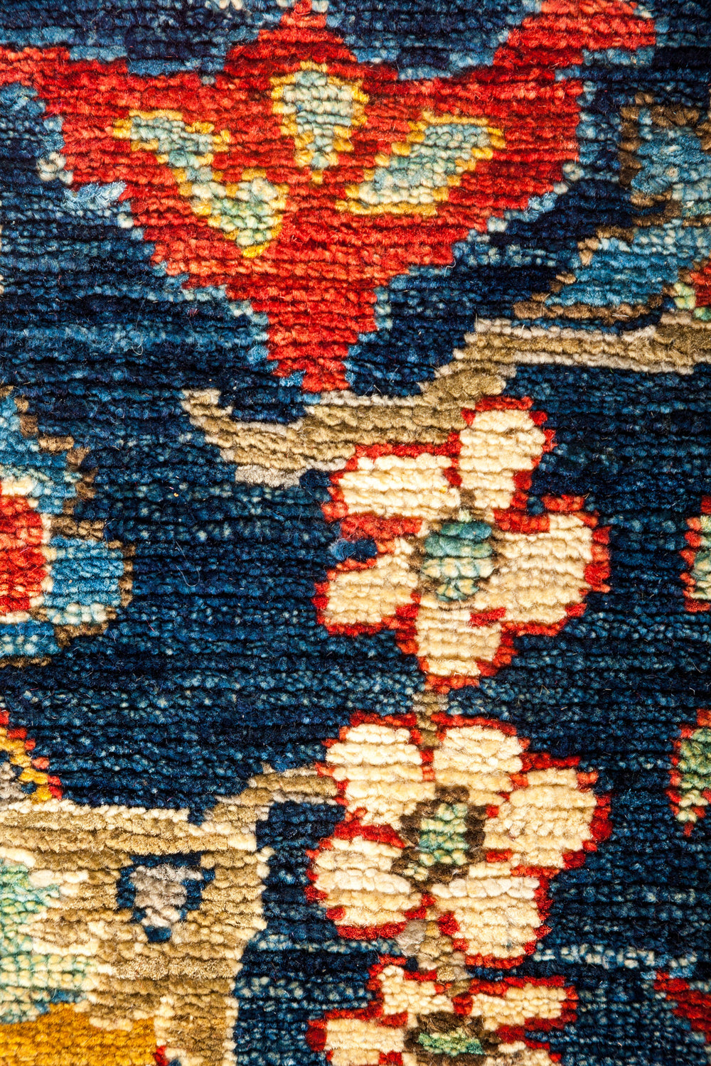 These area rugs and large carpets resemble traditional Persian style but not as elaborated or complex. The designs are bold, striking and colorful. Heriz rugs, South Persian tribal pieces, true Ziegler Sultanabads, and almost any non-urban Iranian weaving has been interpreted and creatively adapted. These carpets are directly appealing and therefore work well in any context, overall style or period.
